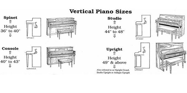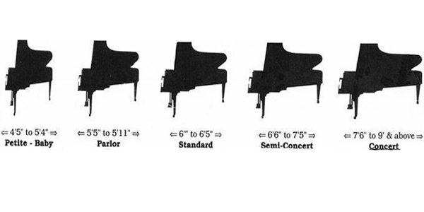 Grand Piano hay còn gọi là Piano cánh : có chiều cao từ 4’5 “-10”, và chiều rộng thường từ 4′-7 ‘ft – Được đo bằng inch hoặc cm – khoảng 36-60 “(91-152cm) chiều cao, 24 -36 “(91-61cm) theo chiều sâu, và thường có chiều rộng 58” (147cm).